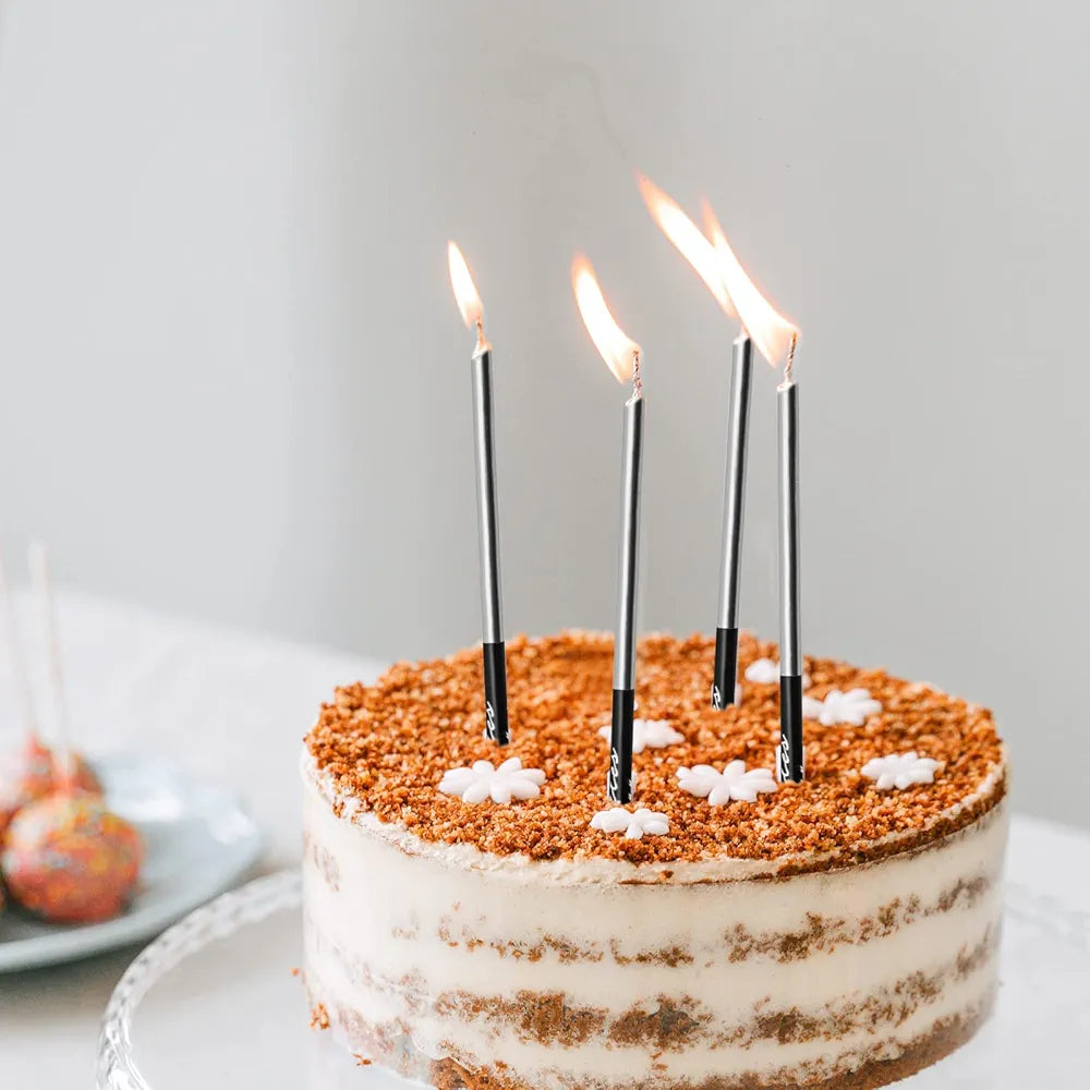 Metalic Silver Candles Set Of 6